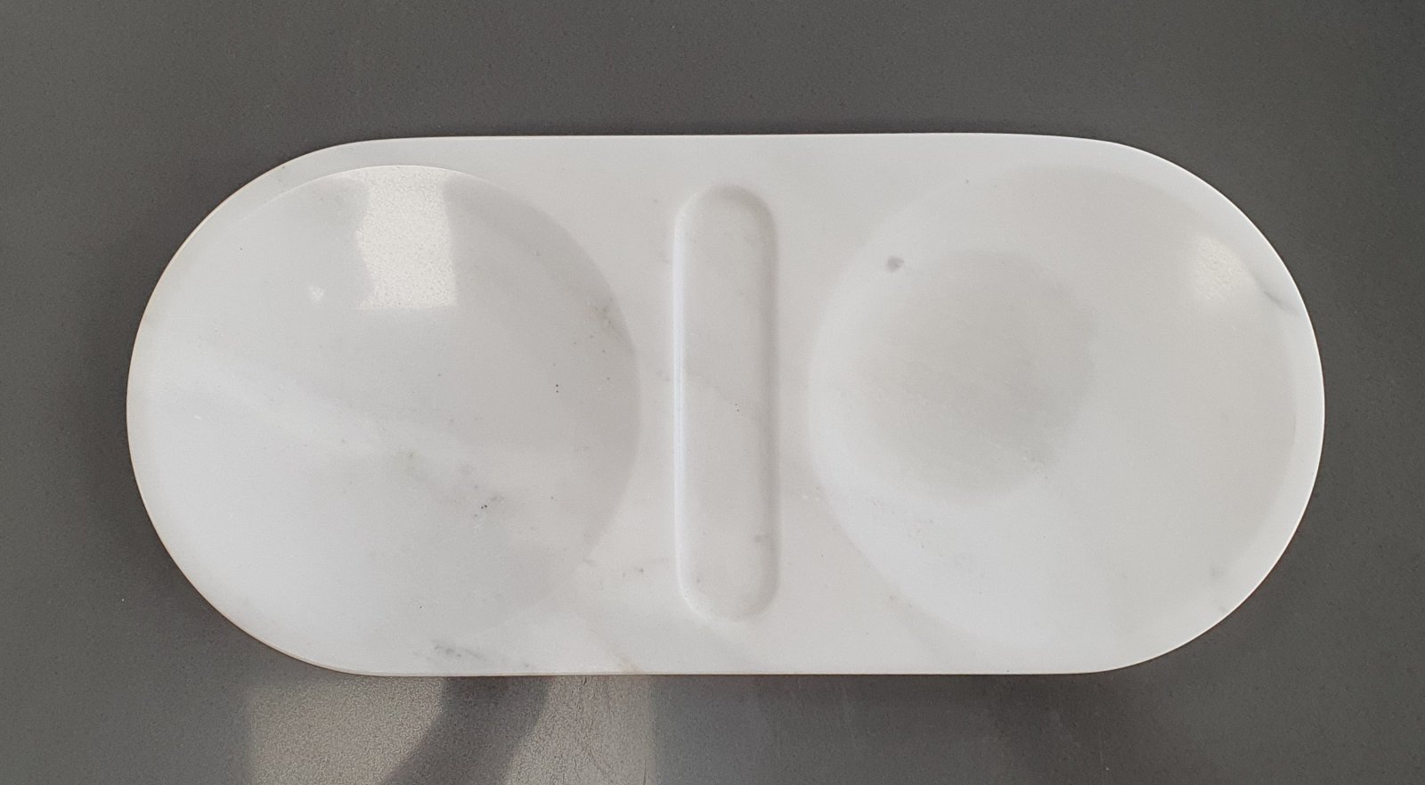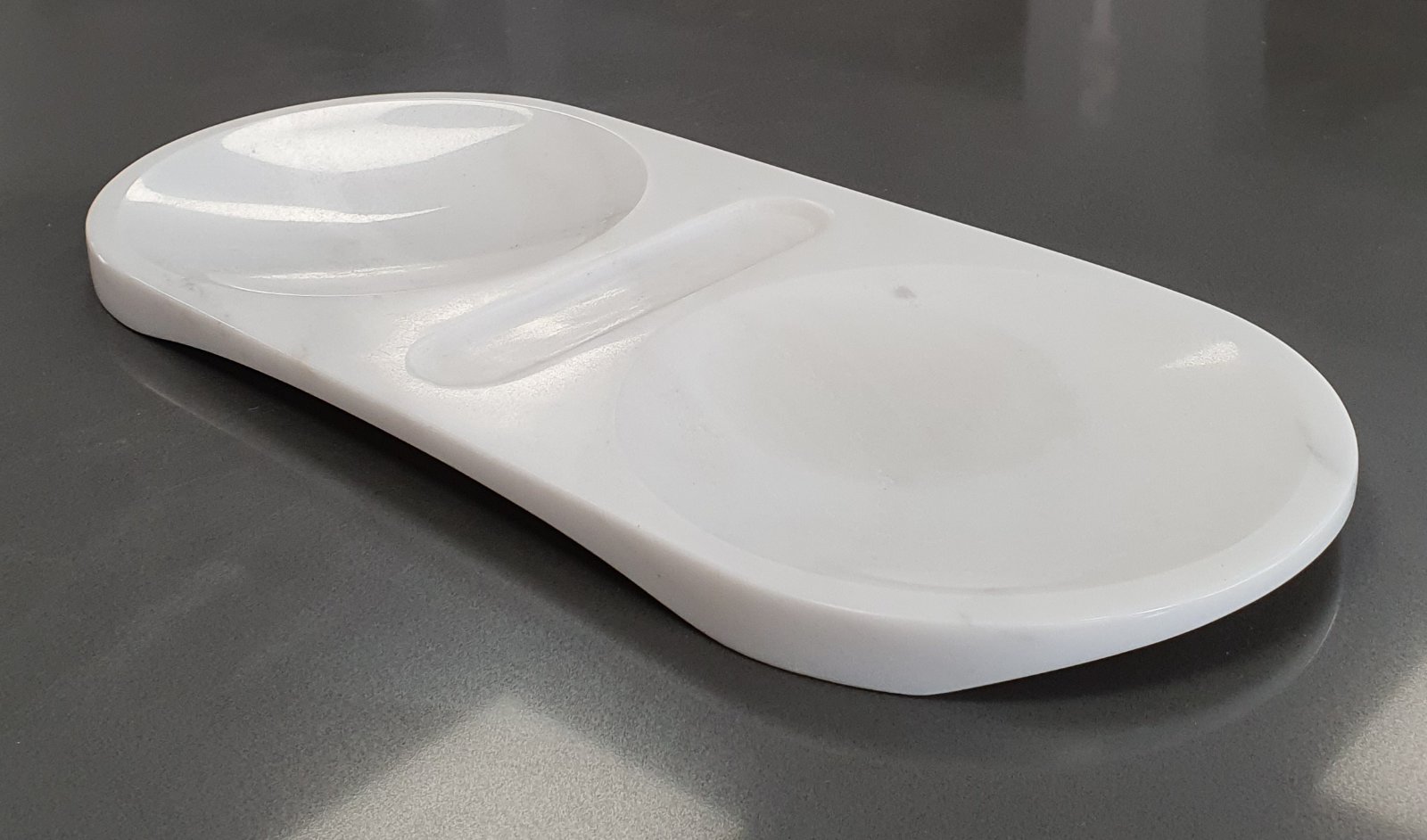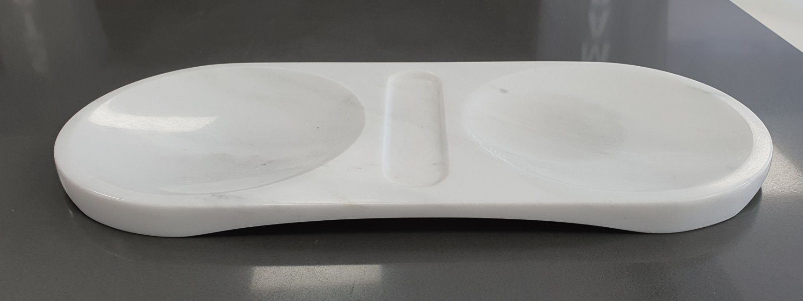 Μαρμάρινη διακοσμητική πιατέλα σερβιρίσματος, τριών θέσεων. Ιδιαίτερος σχεδιασμός που μπορεί να ανταποκριθεί σε πολλές χρήσεις.